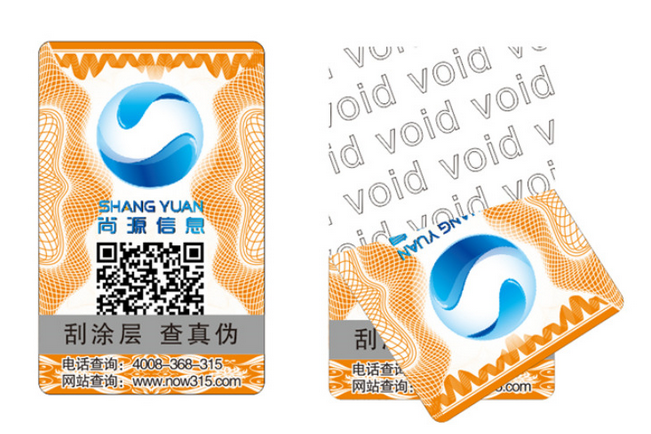上海尚源信息技術有限公司專業(yè)制作各種防偽標簽,并且擁有核心防偽系統(tǒng)。合作客戶可以隨時隨地查庫存、查銷量、查假貨等!詳情可以聯(lián)系客服留下您寶貴的聯(lián)系方式,稍后會有專人和您聯(lián)系,謝謝您的關注!